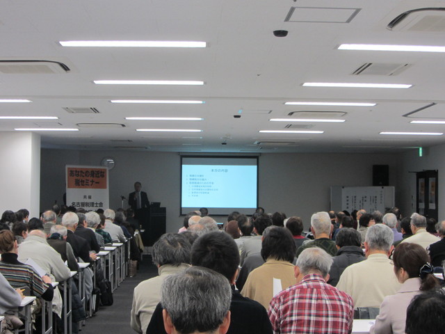 セミナーのテーマは、「改正相続税法について」。平成27年1月から、相続税の基礎控除が現行の6割に縮小されます。その結果、従来相続税とは無縁であった人たちが、相続税の納税義務者になる可能性があります。